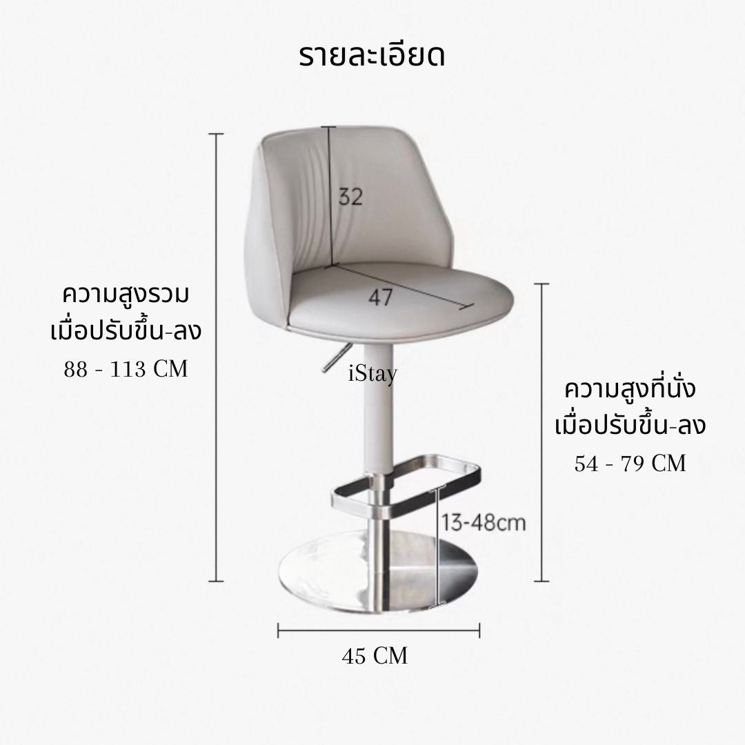 บาร์สตูหรูหรา เบาะนุ่มนั่งสบาย หุ้มหนังคุณภาพสูงผสานเข้ากับขาด้วยวัสดุดีไซน์เดียวกันเพื่อความเรียบหรูที่มากกว่า วัสดุฐานแสตนเลสแท้ มั่นคง ทนทาน และแข็งแรง วัสดุหุ้มเบาะปรับแต่งสีได้ตามต้องการ